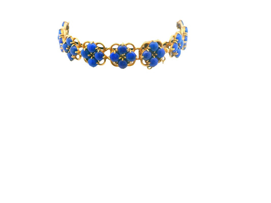 14k Yellow Gold Quatrfoil Pattern Lapis Discs Bracelet