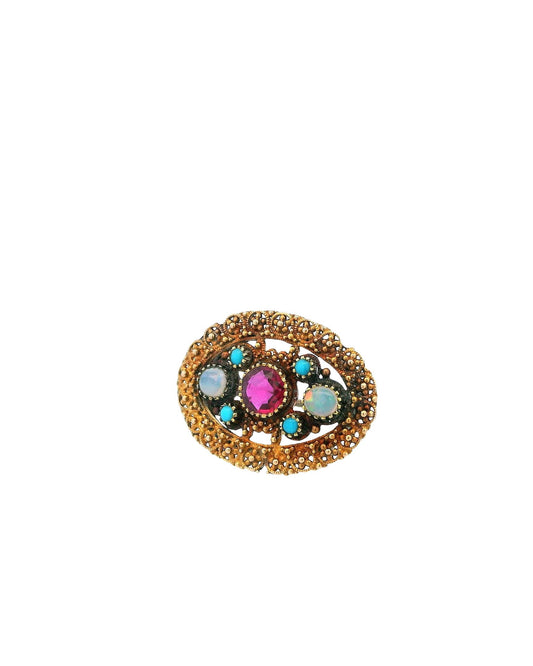 14K Gold Unheated Burma Ruby, Two Opal & Four Turquoise Brooch W/GIA Certificate