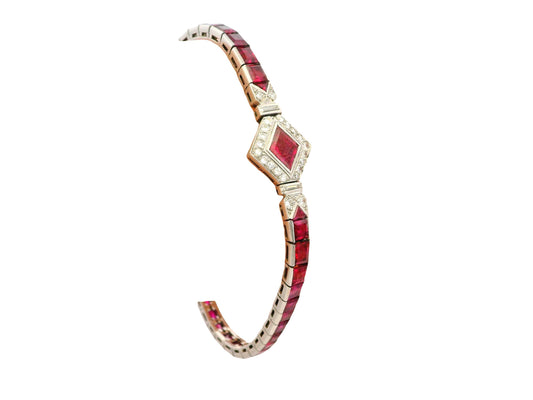 12ct Rubies & 0.70ct Diamond On Platinum setting, slight Taper Bracelet
