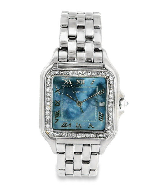 Cartier large Panthere 1650 Blue MOP 18K White Gold Watch