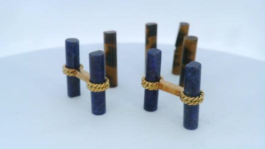 Van Cleef & Arpels Cufflinks 18k Yellow Gold Lapis & Tiger's eye W/Box-Pre-owned