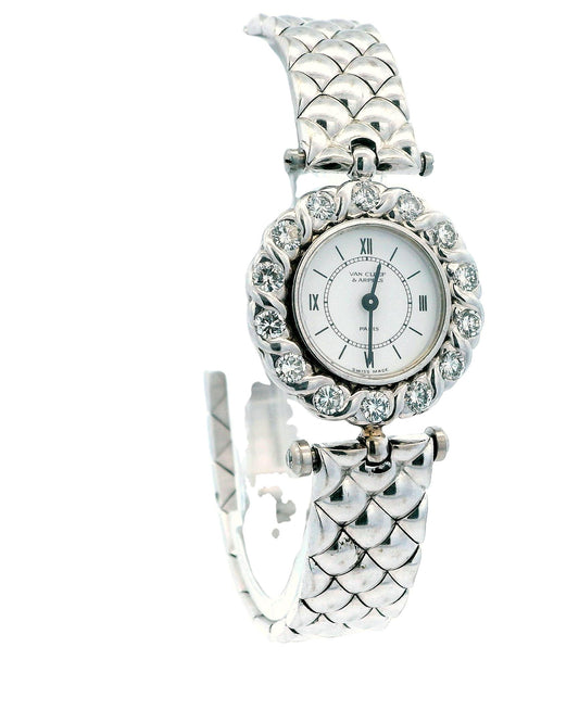 Van Cleef & Arpels 18K White Gold Diamond Bezel Ladies Watch