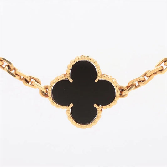 Van Cleef & Arpels 18K Yellow Gold Vintage Alhambra 20P Onyx Necklace