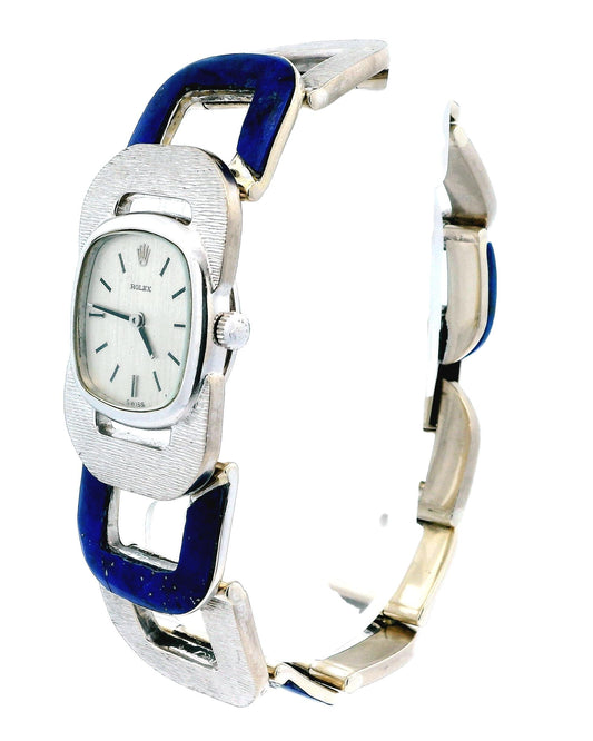 Vintage Rolex Lapis & White Gold U-Link Shape Custom Bracelet Watch